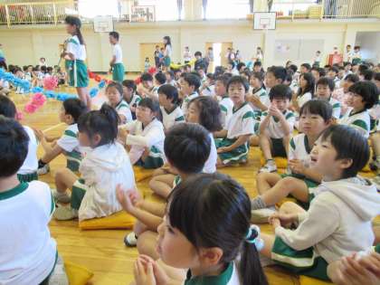 ひな壇に整列しました。実行委員さんの始めの言葉で、いよいよ開会します。