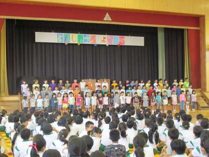ひな壇に整列しました。実行委員さんの始めの言葉で、いよいよ開会します。