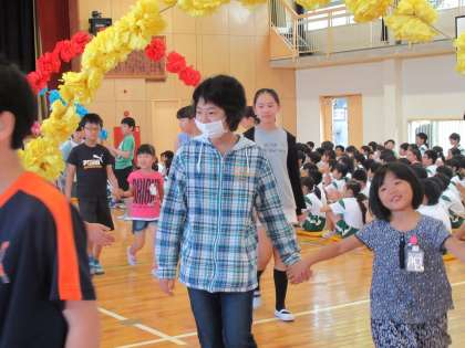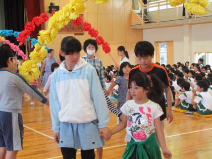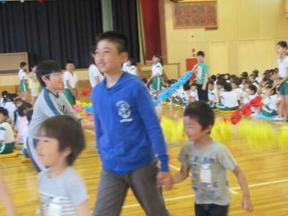 6年生に手を引かれて、1年生退場です。楽しかったことが、表情でわかりますね。