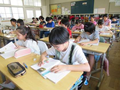 説明文の学習が始まっています。先生の範読を聞きながら、疑問点に線を引いていました。この疑問が、説明文を読み解いていく鍵になります。