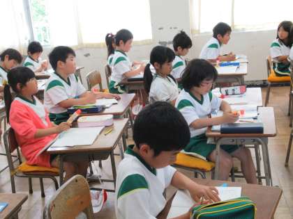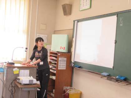 ワークシートの使い方がよく分かるように、先生が、実物投影器で拡大して見せながら説明をしてくれました。