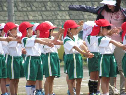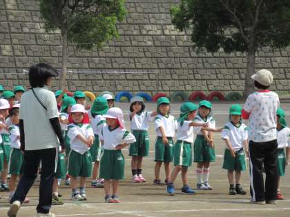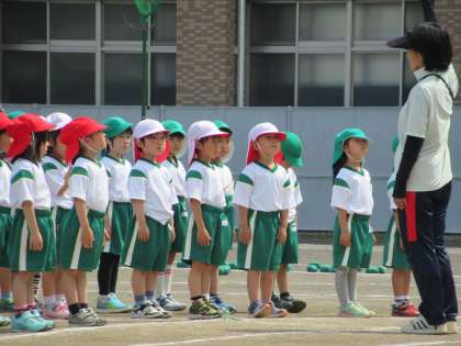 1年生が、学年合同体育の授業をしていました。集合や整列が、ずいぶん上手に素早くできるようになってきました。