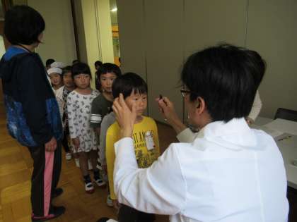 今日は、眼科検診の1日目です。7組も、1年生も、静かに検診を受けています。