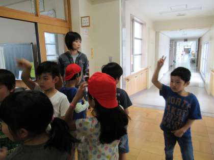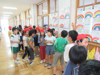 3年生が、検診会場へ移動するところでした。係の友だちの指示に従って、整列しました。