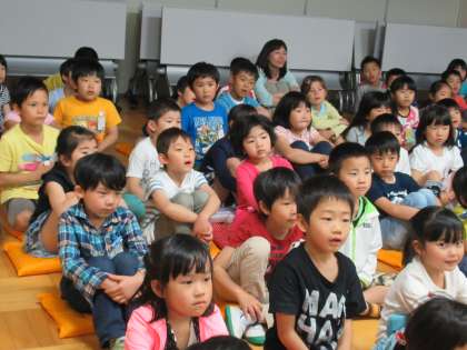 今回のお客様は1年生。ロシア民話の「おだんごぱん」を鑑賞しました。