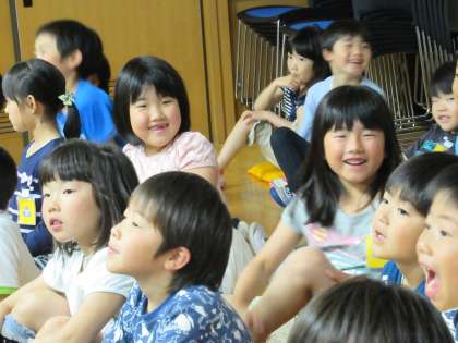 おおかみの登場で、どよめきました。子どもたちは、(おおかみ、こわいよ。気をつけて!)って、思ったんでしょうね。でも、無事に逃げられて、ひと安心しました。