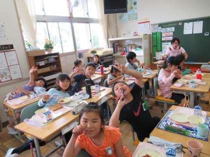 給食では、子どもたちが食に関心をもち、様々な食材を口にしたり地域の産物に親しんだりできるよう、献立を工夫しています。