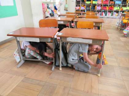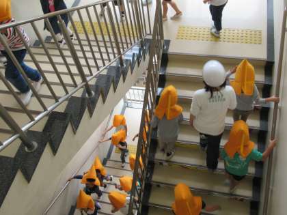 今日は、地震避難→津波避難→引き渡しという、一連の訓練を実施しました。