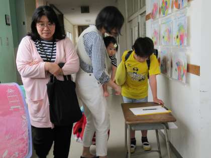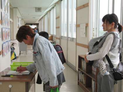 各教室で、引き渡しを開始しました。名簿にご記入いただきながら、円滑に引き渡しが進行しています。
