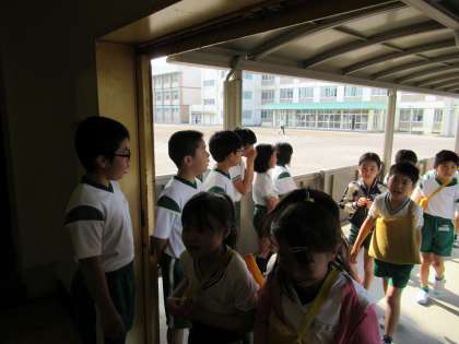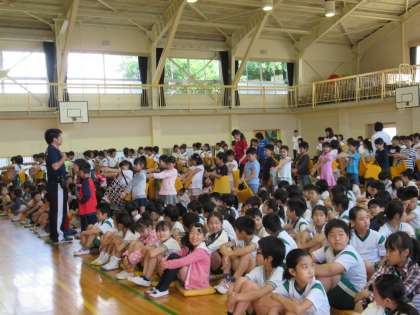 今朝は、1年生が初めて参加して、5月の朝会が開かれました。