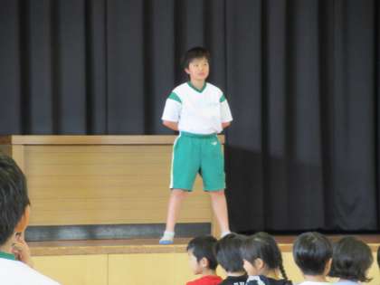 赤・白・緑の応援団長さんたちです。きびきびした動きと、気持ちのいい大きな声で、各組メンバーに気合いを入れてくれました。
