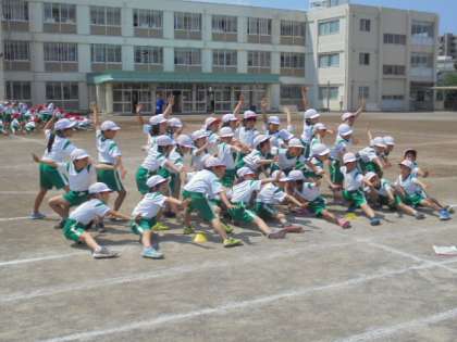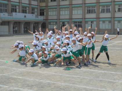 ソーラン節をグランドで踊りました。どんなポーズにするか決まってきましたね!