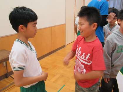 あいさつに始まり、「Do you like 〜?」を使った会話がやりとりされます。