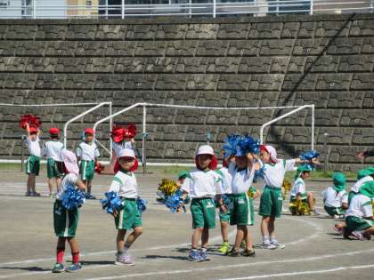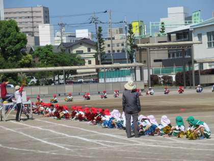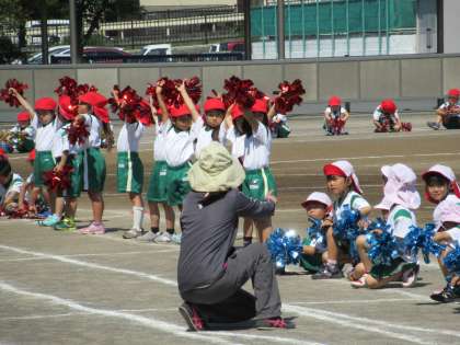 1,2年生合同でダンスの練習をしています。今日は、校庭で移動の仕方を確認しました。