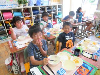 デザートの甘夏。どうやら子どもたちには「すっぱ夏」だったようです。