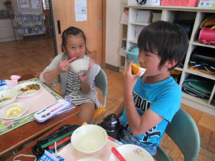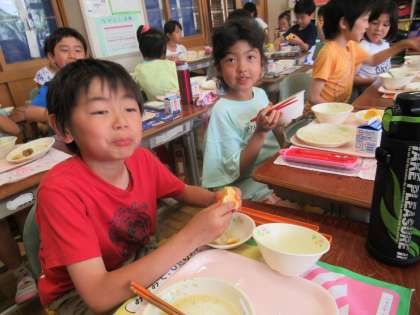 デザートの甘夏。どうやら子どもたちには「すっぱ夏」だったようです。