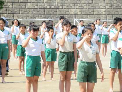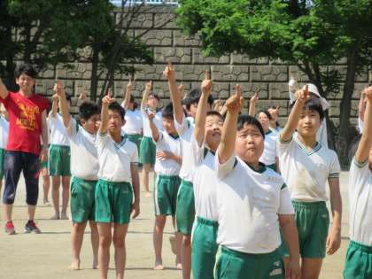 5,6年生が、組み体操の練習をしています。