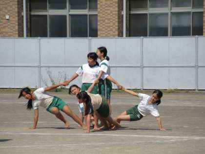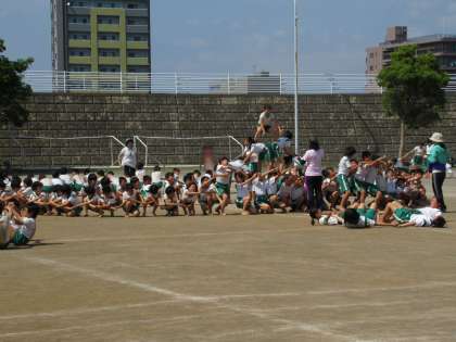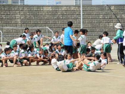 5,6年生が、組み体操の練習をしています。