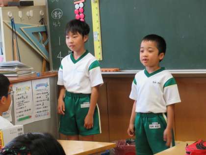 日直さんが、スピーチをしていました。サイコロでお題が決まり、その場で考えて話すので、どきどきです。