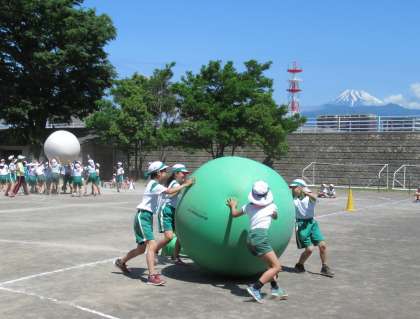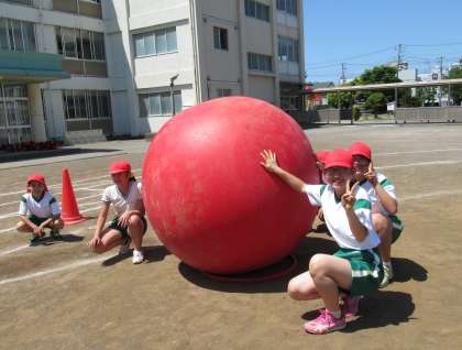 色別対抗の大玉も練習しました。今日の練習では紅組が圧勝しましたが、さて、本番はどうなることでしょう。