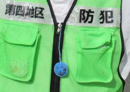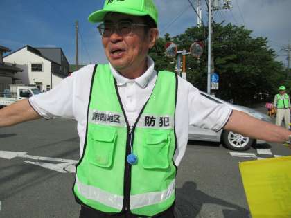 見守りの方が胸に付けているのは、フェルトでできたマスコットです。実はこれ、今春本校を卒業した子が、卒業後に、「お世話になりました。」の言葉とともに、感謝の気持ちをこめて贈った物です。通学路では、すてきなつながりが生まれていました。