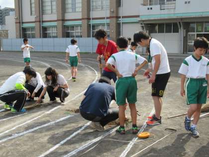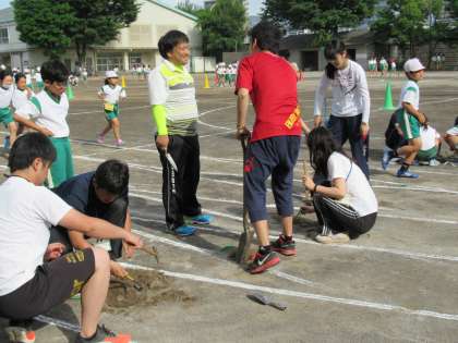 先生方は、7時前から校庭に出て、ラインを引いたり校庭をならしたりして、運動の環境を整えてくれています。