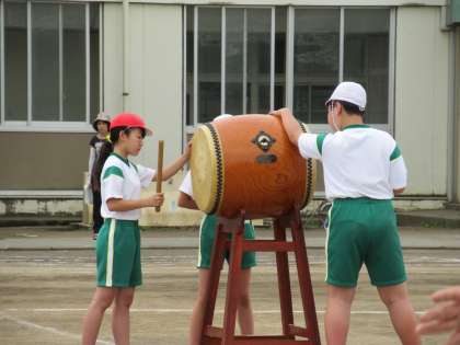 太鼓の合図で、応援団退場!