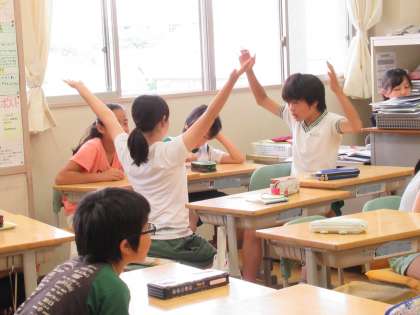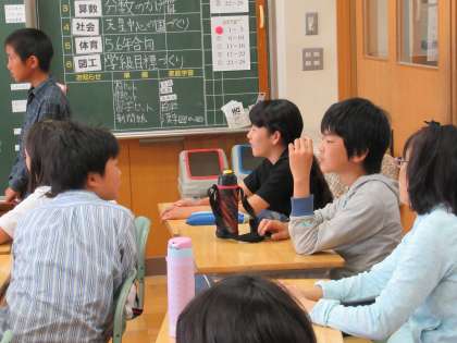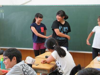こちらは、組み体操の退場をどういう動きでするのか、相談していました。