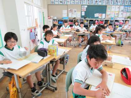 国語の授業が始まります。「アメンボは忍者か」を読んでいきます。