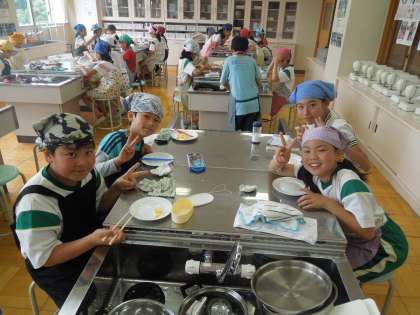 5/25(木)、初めての調理実習に挑戦しました。班によって、固ゆでのものや少し半熟のものがあり、色とりどりのきれいなゆで卵ができました。各家庭から持ってきた塩の味にも違いがあり、楽しめたようです。