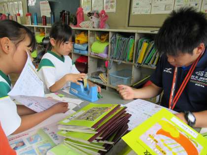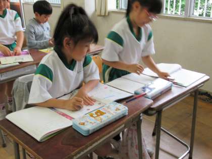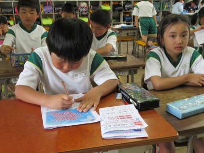 先生に、丸つけをしてもらっていました。直してもらったところは、丁寧に直していきます。