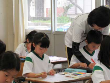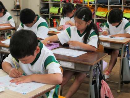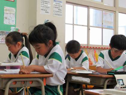 こちらの教室でも、ひらがなプリントに取り組んでいました。姿勢の良さも、大切です。