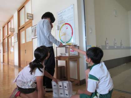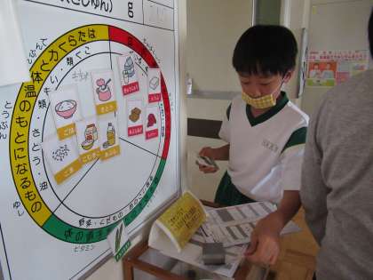 給食委員さんたちが、給食の栄養成分表を本日バージョンにかえてくれていました。食育の一環として、給食委員さんたちも一役かってくれています。