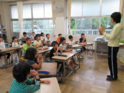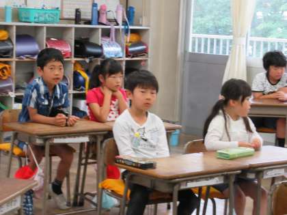 朝の会で、先生のお話を聴いていました。集中して聴けているようですね。