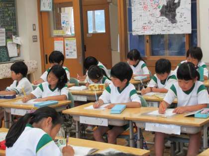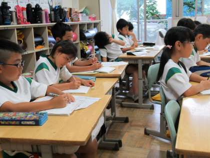 今日は、下級生の下校後に5,6年生と職員による運動会準備があるので、特別日課になっています。忙しい日程なので、早めに予定帳を書いていました。先生の説明を聴きながら、ていねいに書いていきます。