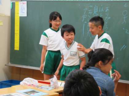 組み体操の退場を華々しく飾るため、動きを相談していました。とりあえず、お試しです。さあ、本番は、どうなるのでしょうか。