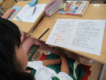6月の学年だよりが分けられました。月予定について先生の説明を聴きながら、大事なことに線を引いていました。
