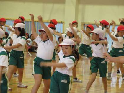2学年いっしょには踊れないので、まず、3年生が踊りました。3年生にとっては、今年、初めて習ったソーラン。ずいぶん上達したものです。