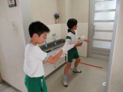 5,6年生が、係ごとに分担して運動会の準備をしてくれました。トイレ掃除をしてくれる子どもたち、人のやりたがらない仕事を、みんなのために頑張ってくれて立派です。
