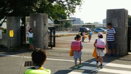 運動会が終わり、計画委員会があいさつ運動を通常の時間に戻しました。元気なあいさつが、響いています。