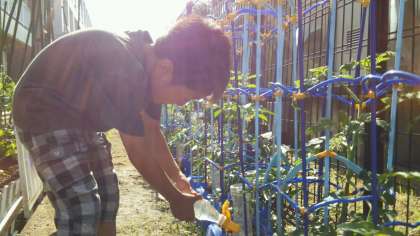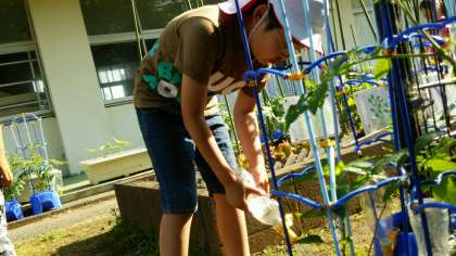 二年生は、夏野菜を育てています。