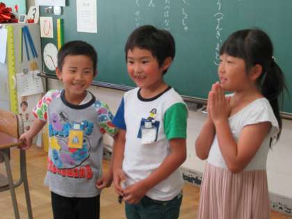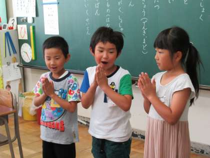 「手をあわせましょう」→「あわせました」→「おいしい給食ごちそうさまでした」