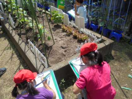 引き続き野菜の観察をしています。成長が見て分かるので、うれしいですね!