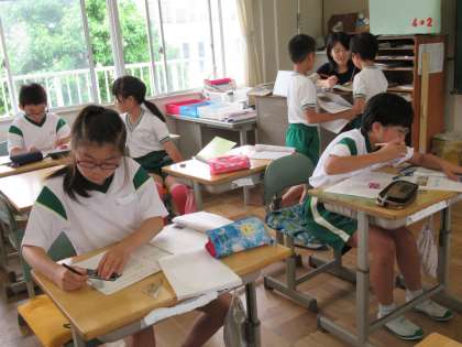 4年生は、3学級を4クラスに編成して、少人数で算数の学習をおこなっています。人数の少なさを生かして、個々のつまづきに対するきめ細やかな支援がおこなわれています。