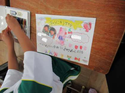 1年生も、係が決まりました。今日は、係ごとに、掲示物を作っていました。