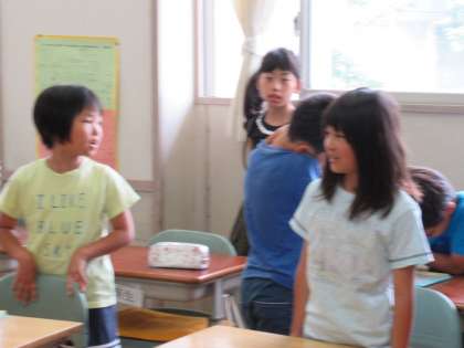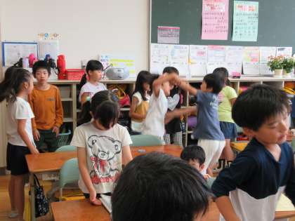 3年生は、朝の会を始めていました。挨拶はきちんとしますが、朝の歌になると、もう、のりのりです。