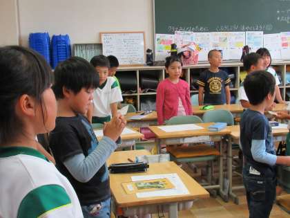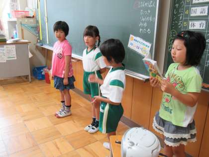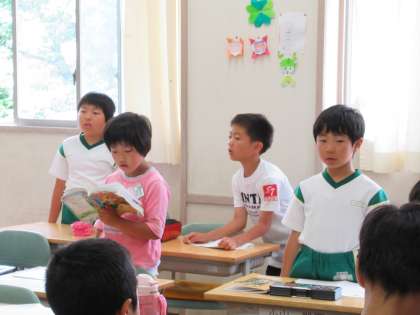 3年生は、朝の会を始めていました。歌の本を見ながら、きれいな声で歌っていました。