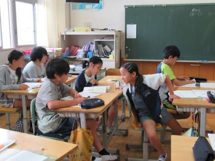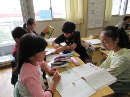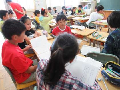 説明文「自分の脳を自分で育てる」の学習です。大段落の区切りを、まずは自分で考え、まわりの友だちと考えを交流していました。