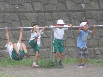 今日は、鉄棒に挑戦しました。体全体を使うこと、逆さまになる感覚など、鉄棒は大切な力を育む運動です。