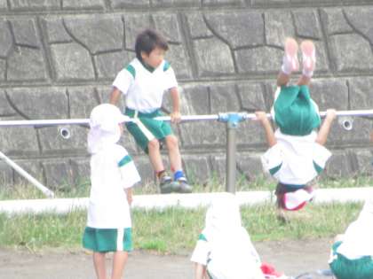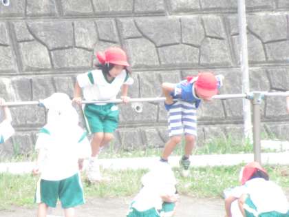 今日は、鉄棒に挑戦しました。体全体を使うこと、逆さまになる感覚など、鉄棒は大切な力を育む運動です。